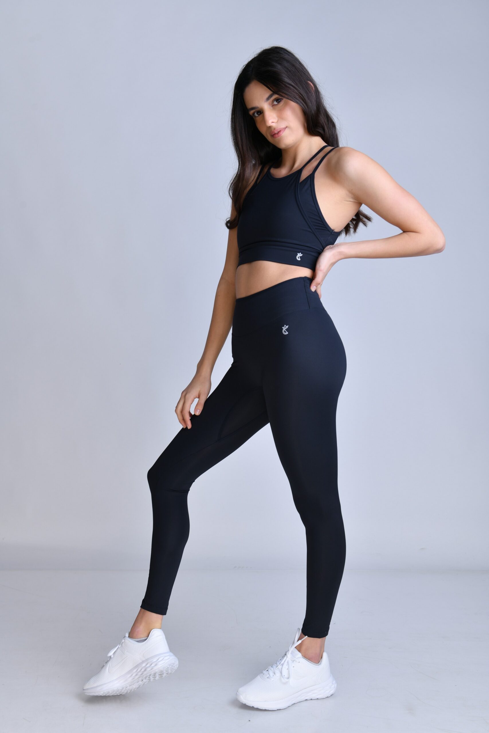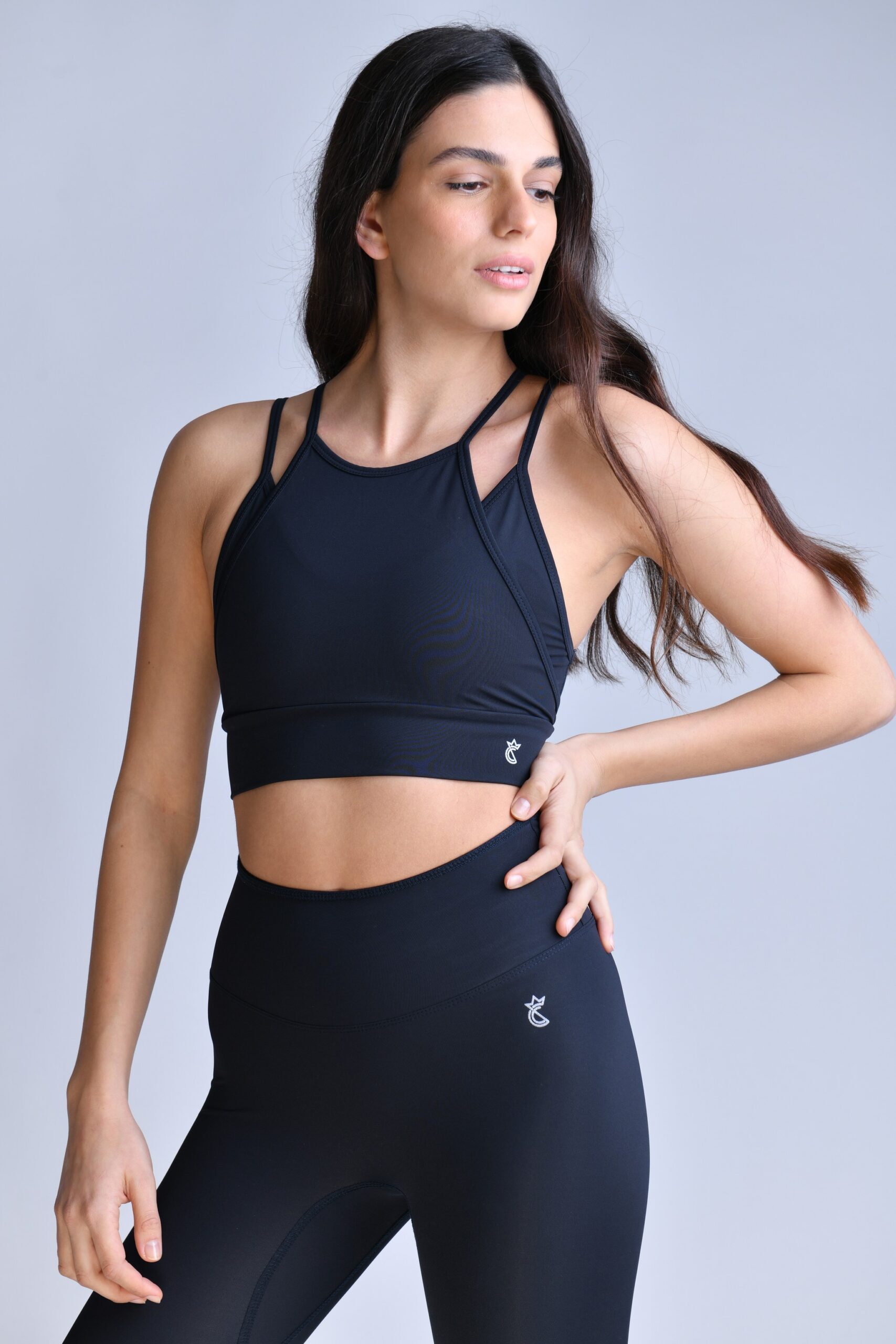 סט – טייץ + דאבל טופ איקס – שחור